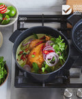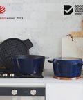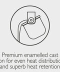 - Premium enamelled cast iron for even heat distribution and superb heat retention