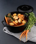 This PYROCAST 28cm/6.5 Litre Casserole provides superior heat retention and even cooking for flavoursome dishes. Versatile cast iron with lid and generous 6.5 Litre capacity for cooking meals for the family or a crowd. This durable cast iron piece can be used on the campfire as well as the cooktop, oven and grill. The moulded side handles allow easy transfer from cooktop to table. The close fitting lid has self basting spikes that allow drops of condensation to baste the dish to keep it tender and moist. This cast iron favourite will last for years and years with proper use and care.