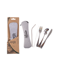Made from high quality stainless steel, this 5 piece set includes a knife, fork, spoon, drinking straw and cleaning brush in a handy neoprene travel pouch, perfect for your handbag or backpack.