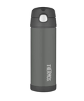 The Thermos Funtainer Vacuum Insulated Drink Bottle in Charcoal boasts the ability to keep beverages cold for up to 12 hours. Thanks to the double wall vacuum insulated design there is no condesation build up. These bottle from Thermos feature a hygienic push button lid with pop up mouthpiece.