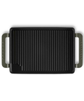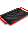 The rectangular grills are great for meat, fish, seafood, fruits, vegetables, and brochettes - giving you The rectangular grills are great for meat, fish, seafood, fruits, vegetables and brochettes - giving you professional seared marks and flavour every time. The grooves allow cooking with less oil while the flat corner collects excess oil - which makes cooking with this grill healthier. This product is made in France. It provides all the benefits of cooking with cast-iron including compatibility with use of induction and other cook tops.