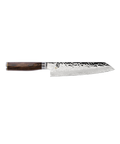 The Shun Premier 8-in. Kiritsuke is part of the beautiful Shun Premier line, which calls to mind the hand-forged knives of ancient Japan. While each knife still takes at least 100 handcrafted steps to complete, the materials Shun uses are among the most advanced in the industry. Each blade has a cutting core of Shun's proprietary VG-MAX “super steel” to take and hold a precision edge. The layered Damascus cladding supports the core and provides additional stain resistance. Near the edge of the blade, where the steels meet, an undulating line is formed—similar to the hamon formed when samurai swords are tempered using a traditional clay-baking technique. The hammered tsuchime finish acts like a series of hollow-ground cavities to reduce drag. The handles nestle comfortably in the hand, while the embossed end cap adds balance and beauty.
