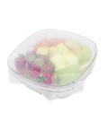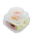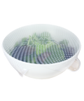 Stretch, grip, and seal! These super flexible Silicone Food Wraps from Grand Fusion stretch up to 2 times their size to fit containers of various sizes and shapes. They create an airtight seal keeping food fresher for longer. Made from food grade silicone, these wraps are BPA-free, eco-friendly, reusable and dishwasher, refrigerator, and microwave safe. Suitable for stainless steel, glass, porcelain, ceramic containers, and more, they are a great alternative to plastic wrap or foil.