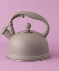 The Typhoon Otto Stove Top Kettle features a classic pastel grey design with an elegant silver metallic lid.