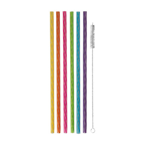 Smoothie Silicone Straws 6piece with Brush, 26.7x1.1x1.1cm - Silicone