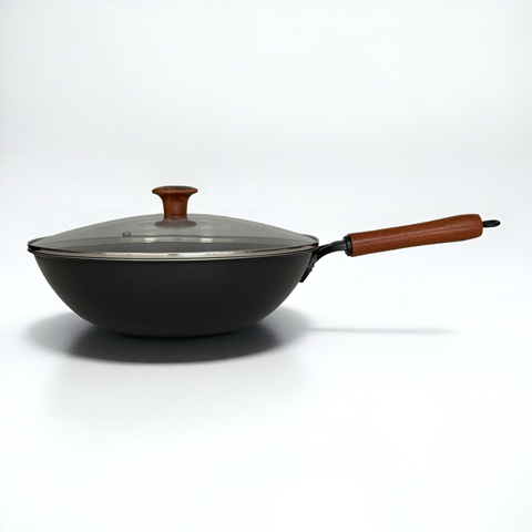 Rust-Resistant Lightweight Iron Wok with Steel Lid 30cm