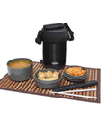 All three plastic containers are BPA-free and microwave safe making preparing your meal a breeze plus a handy pair of chopsticks is included. The Thermos Vacuum Insulated Food Storage with 3 Plastic Containers & Chopsticks Grey comes with a convenient detachable strap for easy carrying as well as a non-slip base to keep in place.