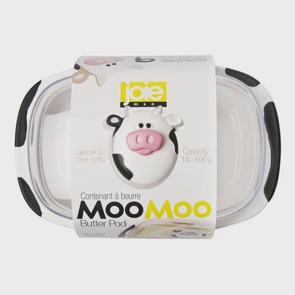 It's important to keep butter fresh and this Moo Moo Butter Dish does so with farmhouse charm. The loveable black and white cow design seen on the tray and lid handle will add delightful character to your benchtop storage. Made from BPA-free plastic, it holds a 500g butter block with a clear lid to view the butter, while providing an easy way to serve butter at the table. Collect more kitchen tools from the Joie Moo Moo range and get the whole family involved in cooking and baking.