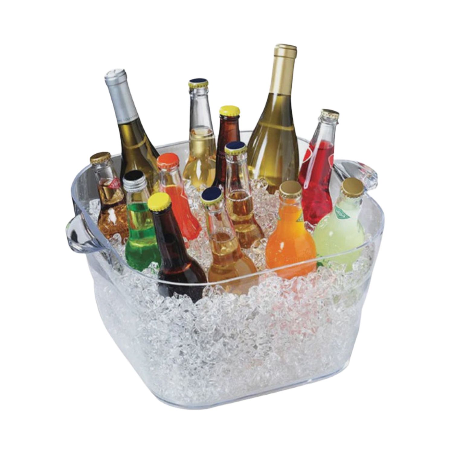 Cerroni Square Party Tub is made from BPA-free polycarbonate, this bucket has a curved body so that wine bottles can easily rest and a cutout handle for convenient handling. Perfect for serving cold beverages anywhere, at any time. Capacity: 16.6 liters.