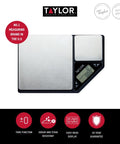 As Seen on TV! An innovative dual platform design makes these Taylor Pro digital kitchen scales the perfect choice for a busy kitchen environment. It has two sets of scales. There's a large platform for weighing bigger quantities of general dry and liquid ingredients - up to 5 kilograms or 5 litres. There's also a small set of precision scales, designed for measuring those small pinches and dashes that can make all the difference to your recipes. You can use these scales separately, or at the same time too. The easy-read displays measurements from both digital food scales. So, you can easily cut down on prep times by measuring two sets of ingredients in just a single session. Twenty year guarantee