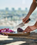 Features ergonomically aligned slim handle and bolster for precise and comfortable handling when cutting, with a 3/4 concealed tang, for impressive balance and safe, secure handling