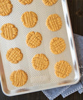Embossed Natural Aluminum Bakeware enhances the look and performance of our hugely popular baking pans. Exclusive Prism grid adds durability and provides easy release while also improving airflow for uniform crisping. Encapsulated galvanized steel rims prevent warping.