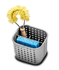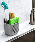 The Madesmart Pocket Sink Station keeps dish washing tools tidy and contained. Divided interior compartments provide a space for sponges, scrubbers, and dish wands, while ventilation holes promote faster drying for improved sanitation. The detachable drainage base allows for easy cleaning, and soft-grip material protects countertops while keeping the station in place.