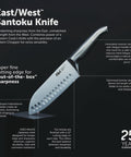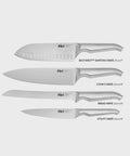 Contains: Utility Knife 15cm, East/West Santoku Knife 17cm, Bread Knife 20cm, Cook's Knife 20cm, Capsule knife block.