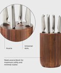 The Furi Capsule knife block can only be described as elegantly simple. The rich coloured acacia wood knife block will be a centrepiece in any kitchen. This stunning knife block will securely store 4 Furi knives, and keep them in excellent condition for years to come.