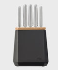 Contains an all-star knife configuration: East/West™ Santoku Knife 17cm (7 inch), Cook's Knife 20cm (8 inch), Bread Knife 20cm (8 inch), Utility Knife 15cm (6 inch), Asian Utility Knife 12cm (4.5 inches), Midnight Stone Block