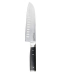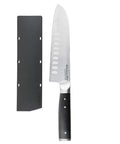 Get inspired in the kitchen with the KitchenAid 2pc Santoku Knife Set with sheaths. Expertly forged from semi-polished, high-carbon Japanese steel, hardened and tempered for superior strength and a longer-lasting edge. This exceptional knife offers the lightness and precision of the classic Santoku shape, while the oval indentations prevent food from sticking to the blade, for effortless chopping, dicing and wafer-thin slicing.