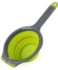 It doubles up as a colander and when not in use, it will collapse to a 2.5cm thickness for compact storage, even the handle extends up to 20.5cm for stability over the sink.