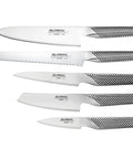 With the GLOBAL UKU Cutlery Set in your kitchen, you're assured of having the right knife at hand to fulfil your grandest culinary ambitions. Each knife has been specifically chosen for its practicality and versatility and all pieces come neatly housed in a stunning maple wood storage block. Also available in walnut.